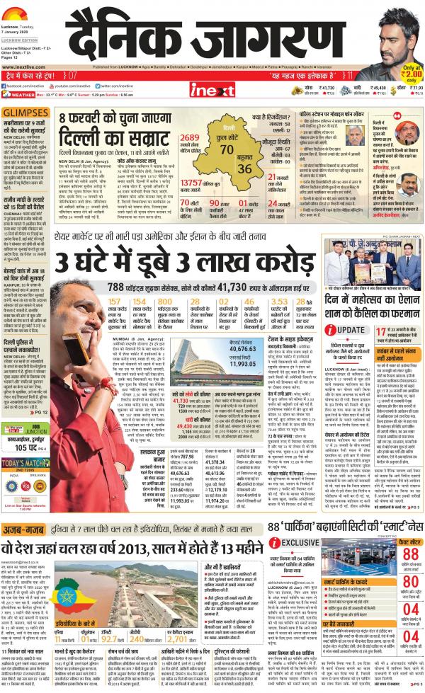 Inext hindi epaper online popular hindi newspaper which cover news and updates from uttar pradesh uttarakhand bihar jharkhand madhya pradesh and all across india. About dainik jagran epaper. Dainik jagran lucknow news in hindi लखनऊ सम च र read latest lucknow news headlines from lucknow local news paper. Dainik jaran up epaper covers latest hindi news from up region.